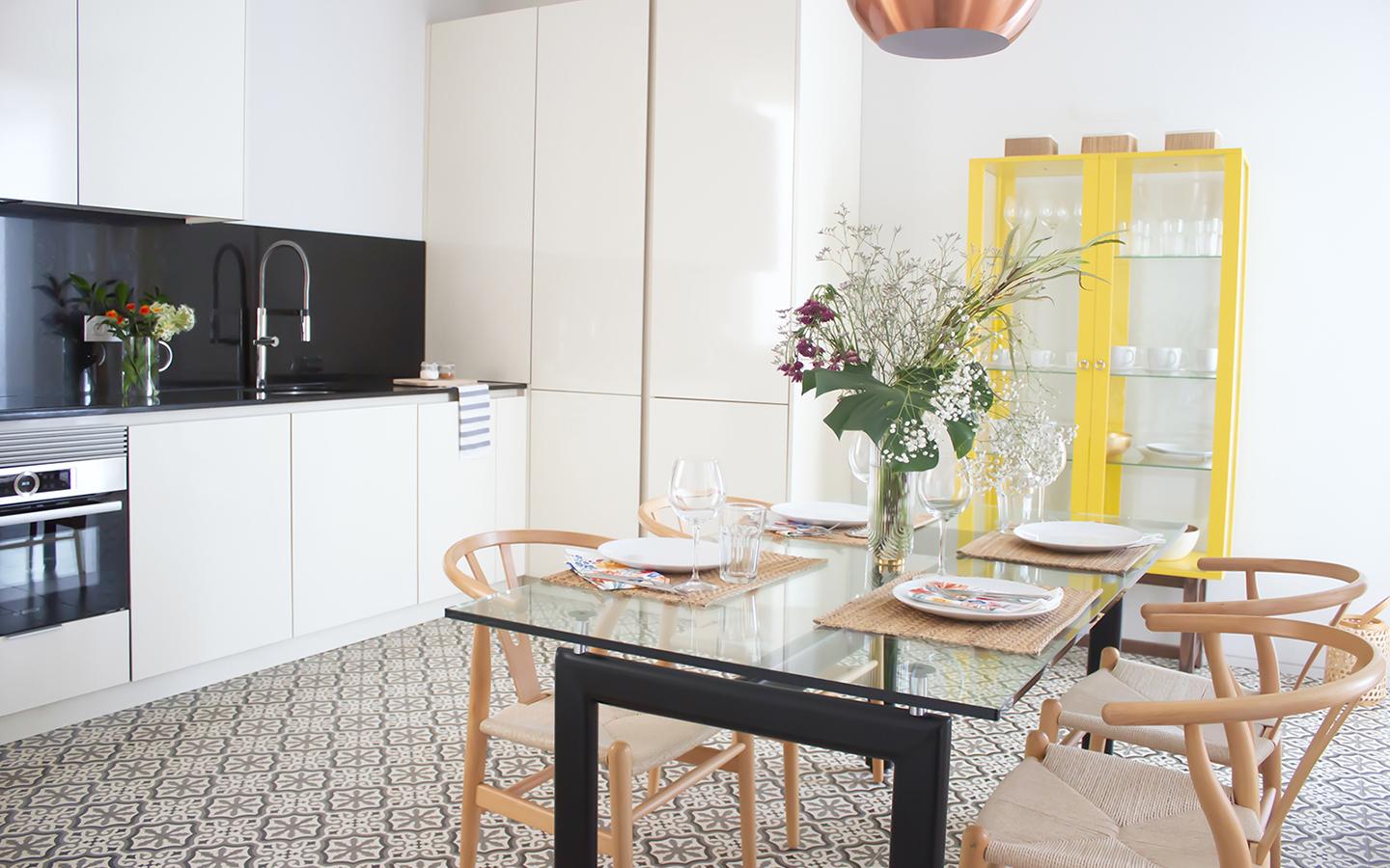 La vivienda, equipada con todo lo necesario para una estancia confortable, cuenta con aire acondicionado frío/calor, calefacción por gas natural, doble juego de ropa de cama y toallas por inquilino, menaje de cocina completo, electrodomésticos de gran tamaño (lavadora/secadora, lavavajillas, frigorífico, horno/microondas), así como pequeños electrodomésticos (batidora, tostadora, cafetera Nespresso, secador de pelo, plancha, hervidor de agua).
